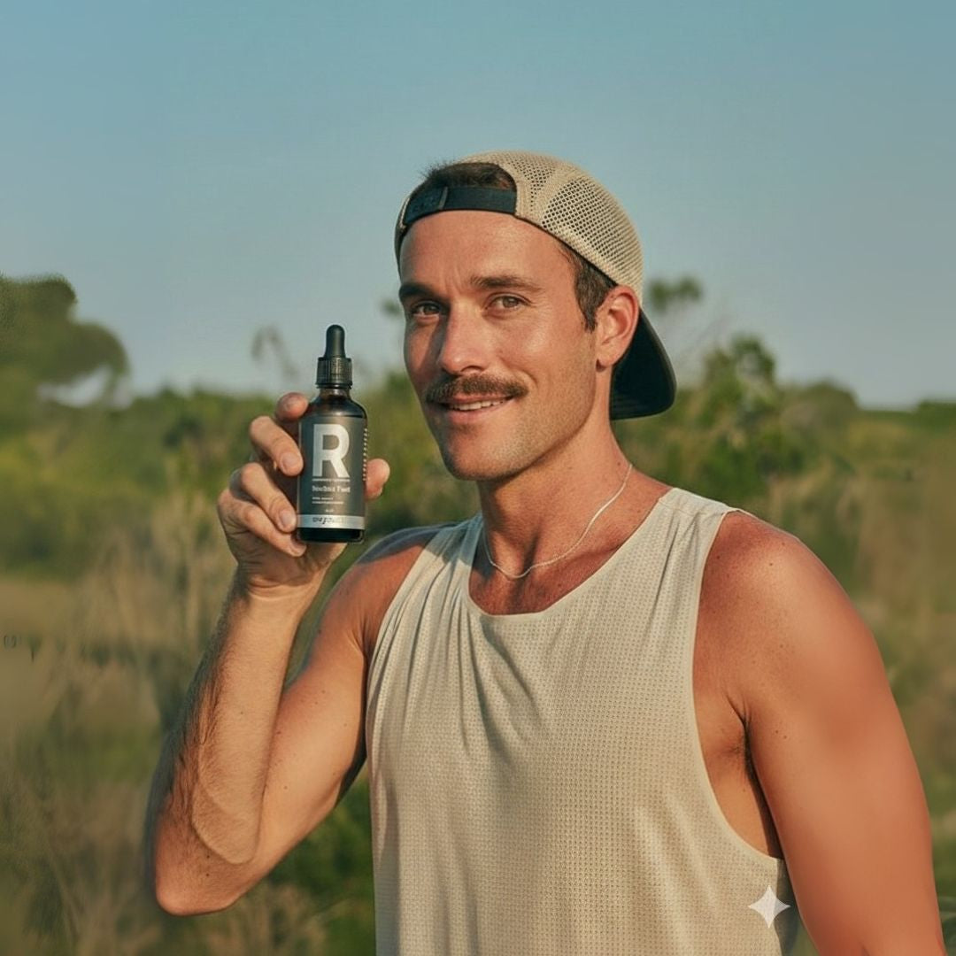 Agitá y tomá 3–5 gotas bajo la lengua (o según indique el envase) 5–10 minutos antes de entrenar/competir. En sesiones muy intensas, podés repetir según tolerancia personal.